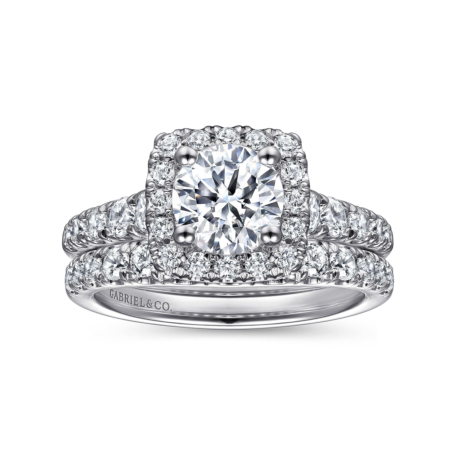 You're reviewing: 14K White Gold Cushion Halo Round Diamond Engagement Ring