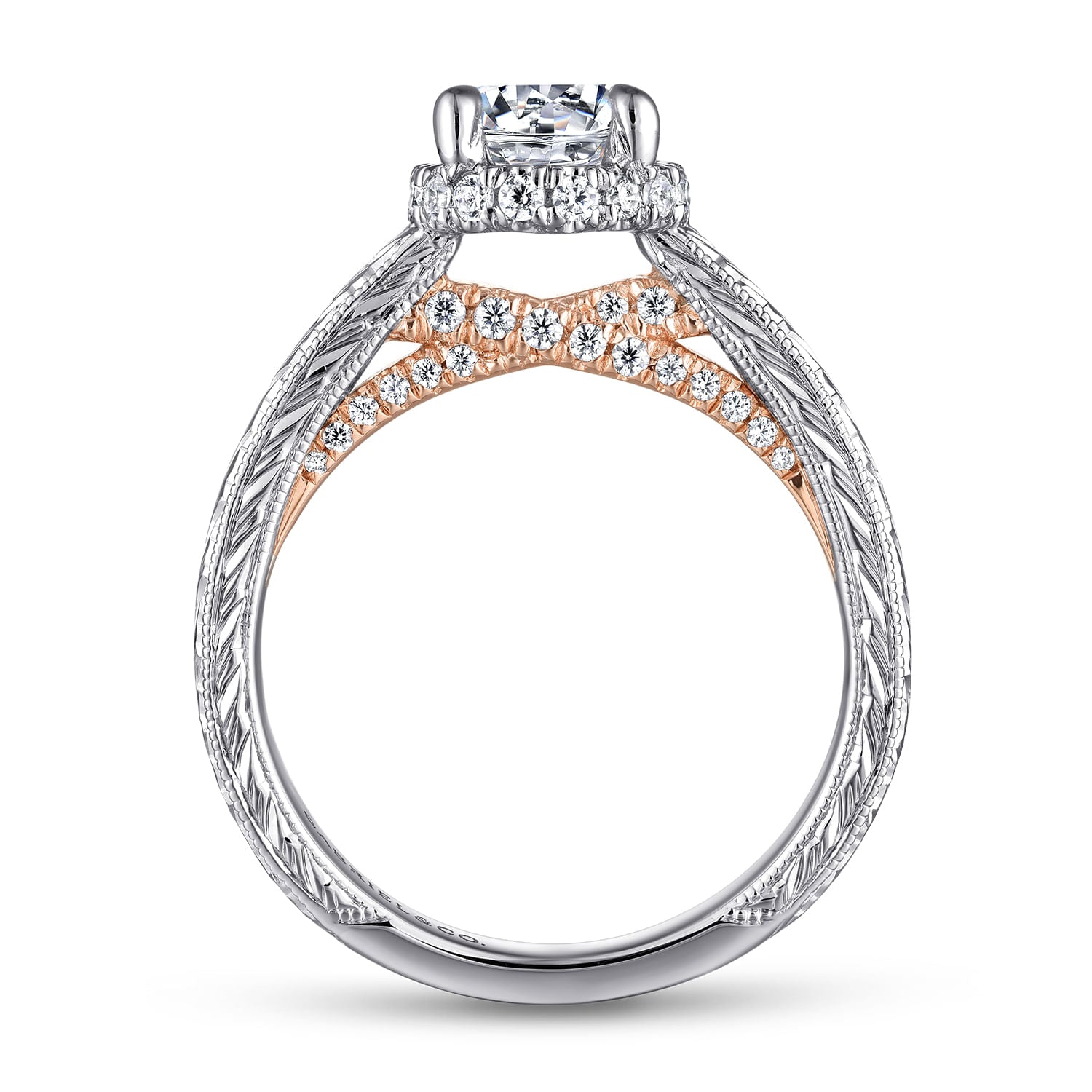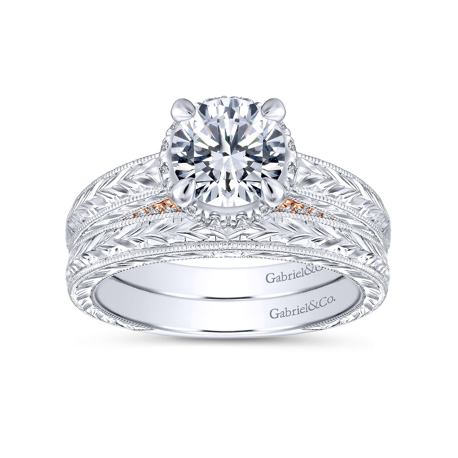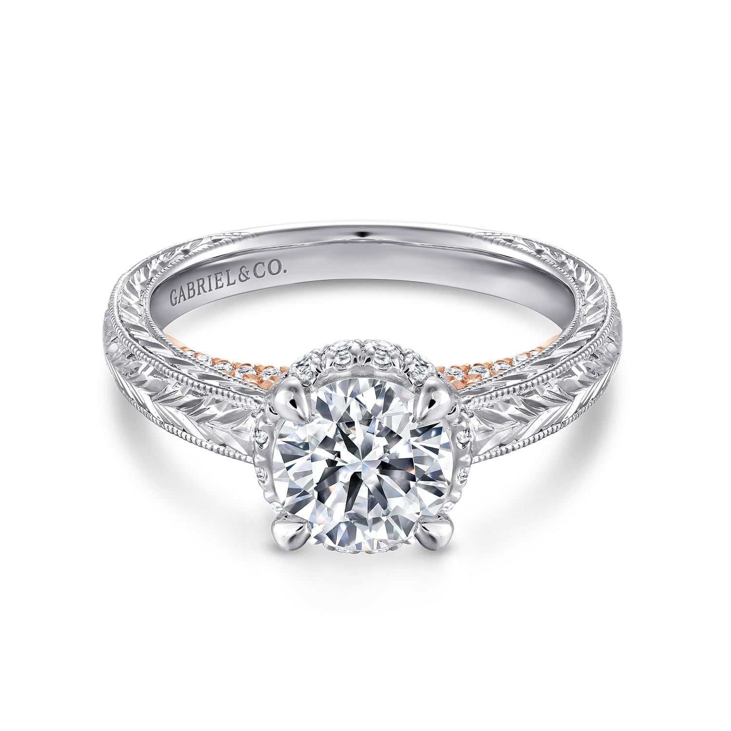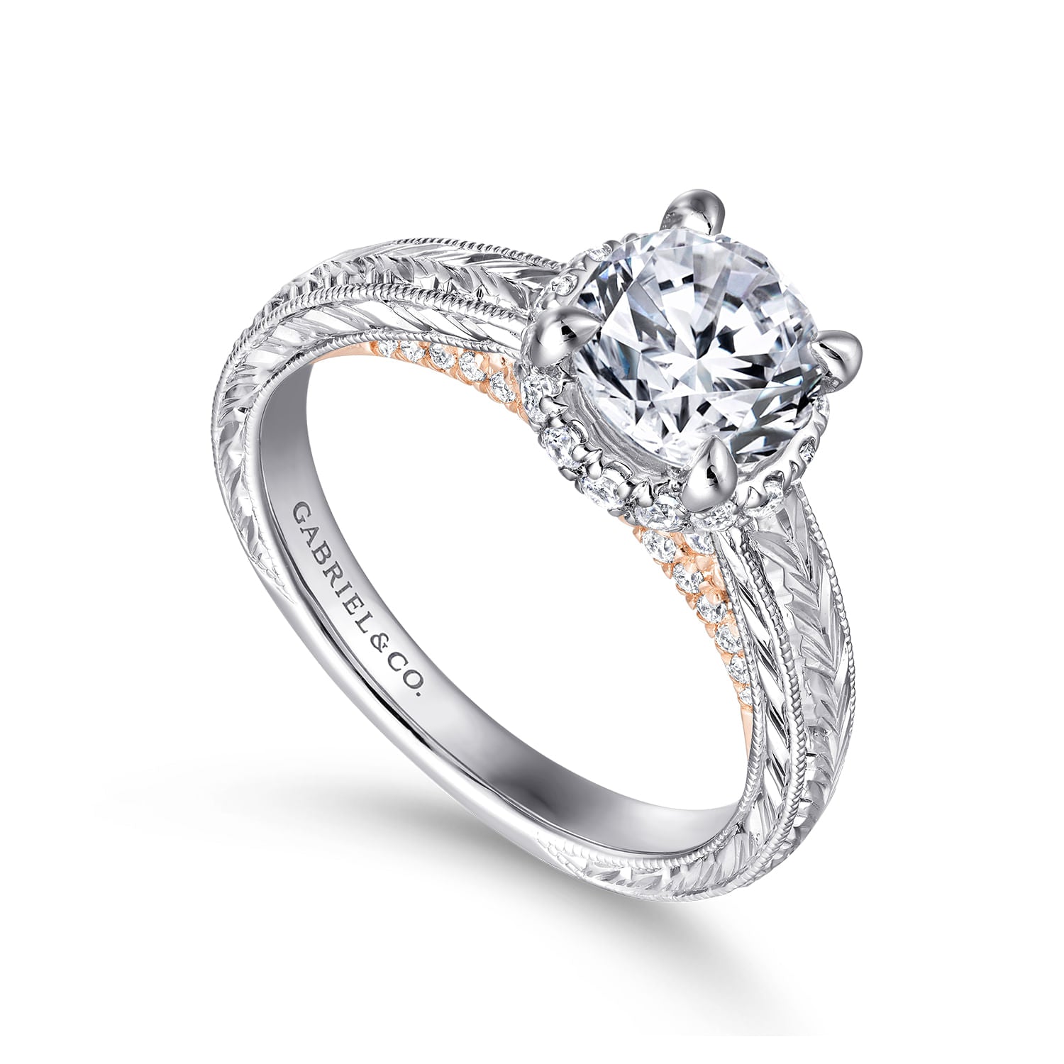14K White-Rose Gold Hidden Halo Round Diamond Engagement Ring
