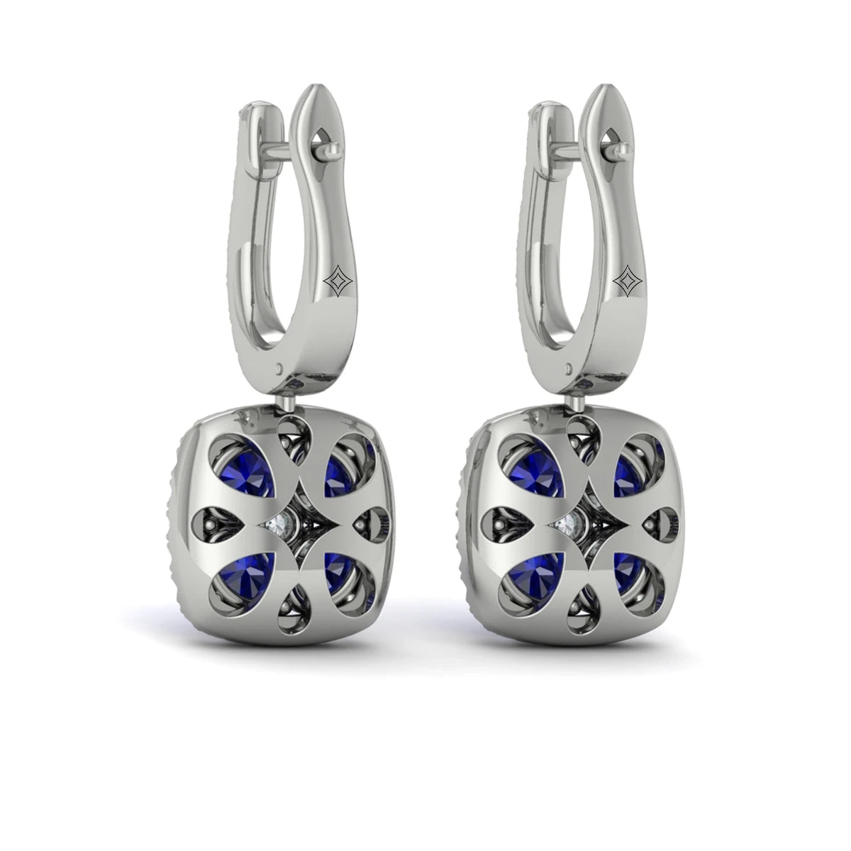 Cushion Diamond and Multi Sapphire Earrings White Gold