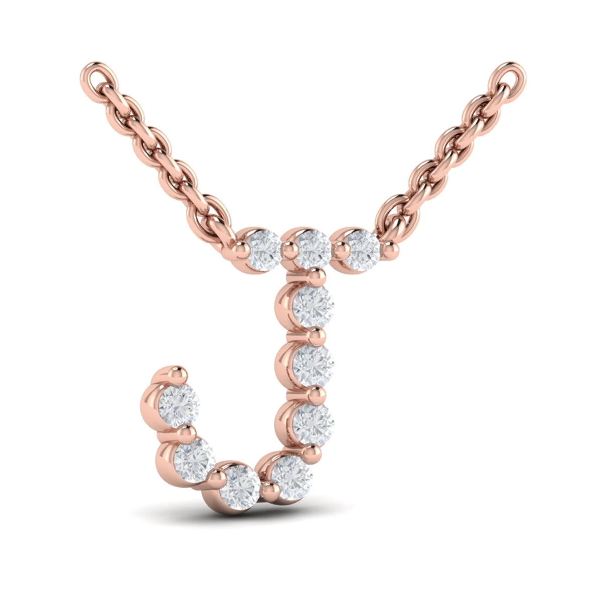 Diamond Alphabet Pendant Necklace, J Rose Gold