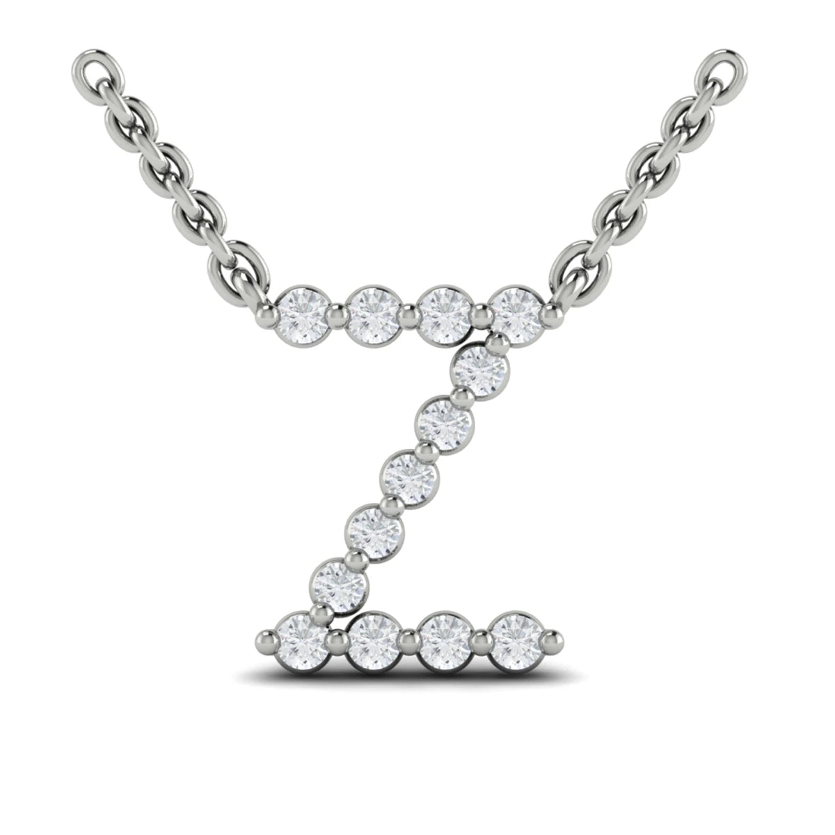 Diamond Alphabet Pendant Necklace, Z White Gold