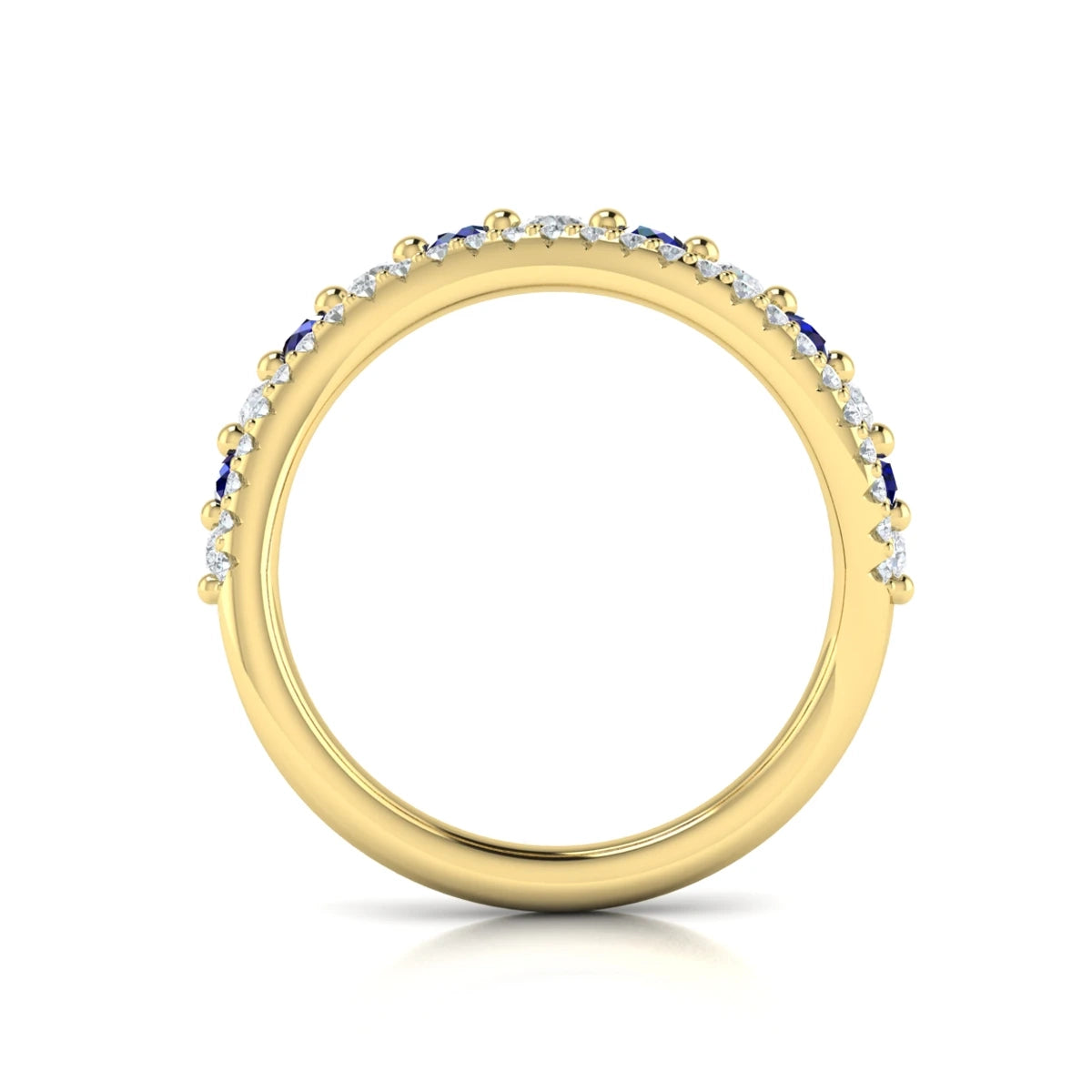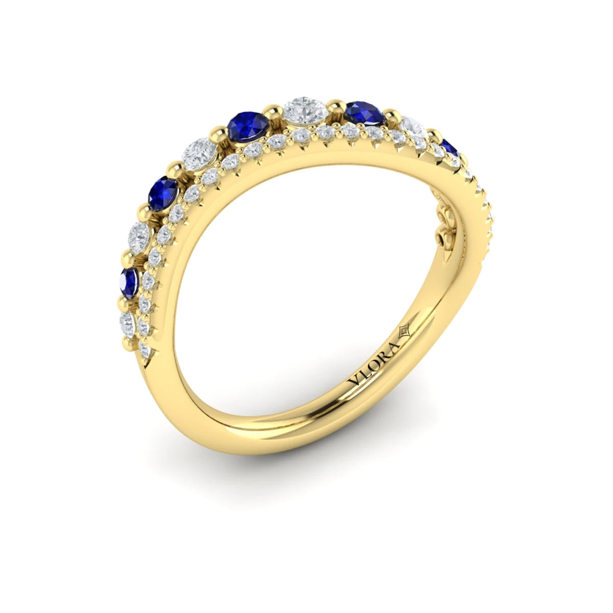 Diamond and Blue Sapphire Two Row Curved Ring Yellow Gold
