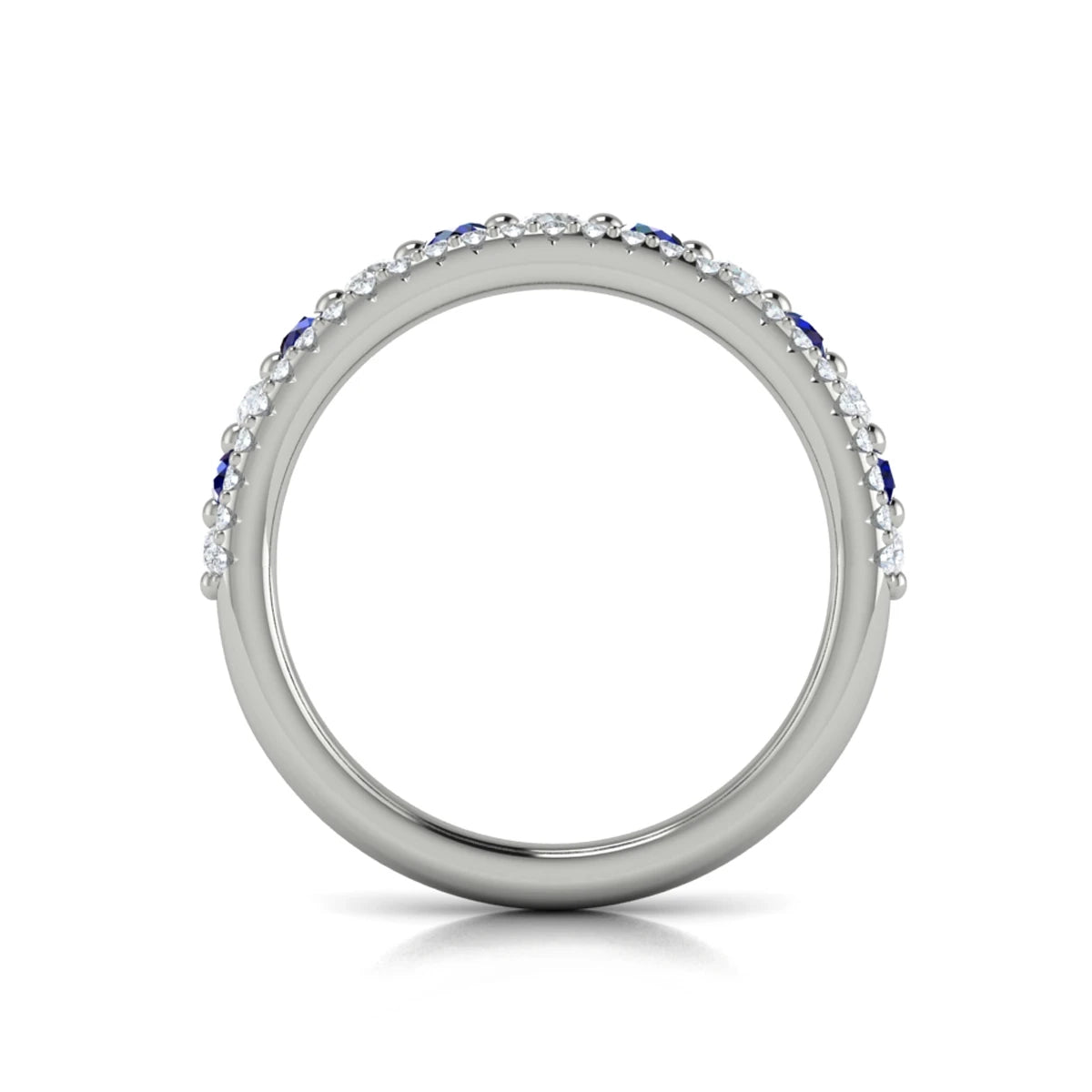 Diamond and Blue Sapphire Two Row Ring White Gold