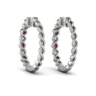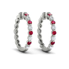 Diamond and Ruby Twist Hoop Earrings White Gold