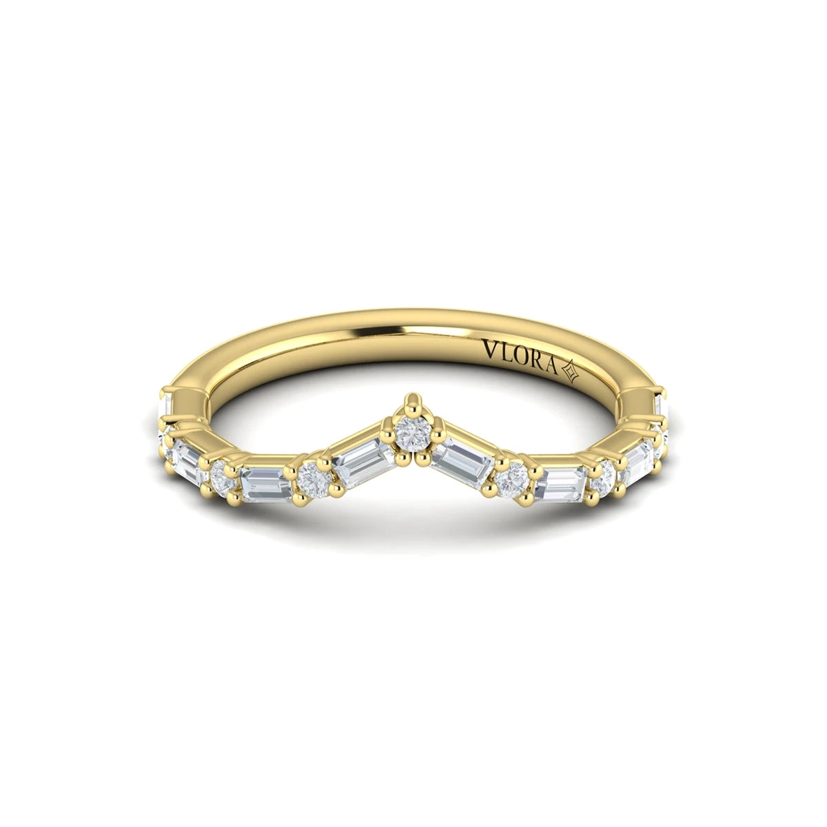 Diamond Baguette Chevron Ring Yellow Gold