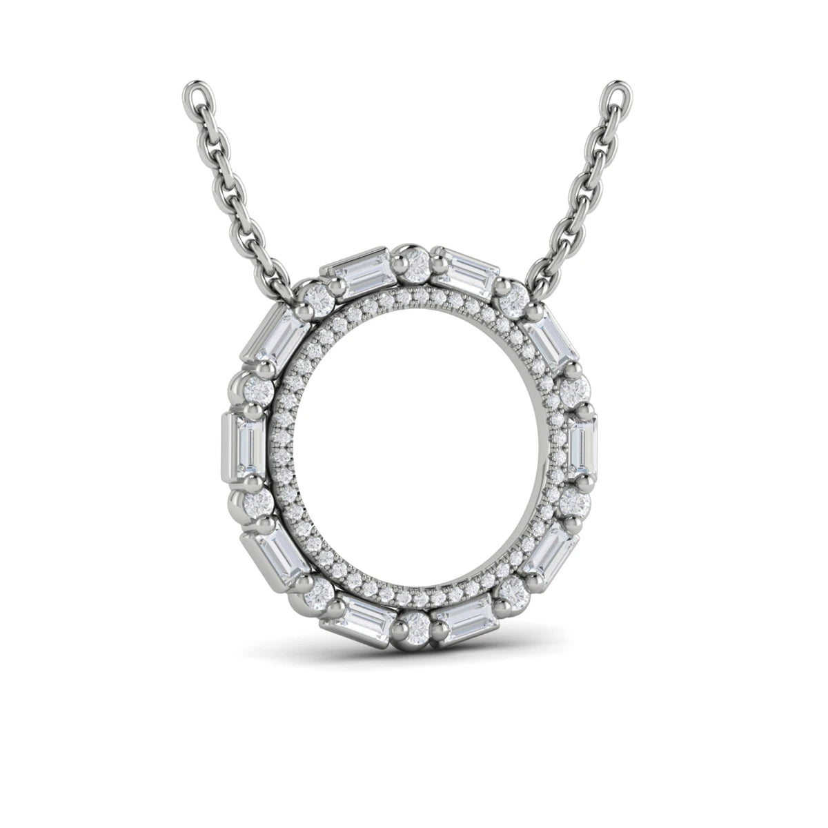 Diamond Baguette Double Open Circle Pendant Necklace White Gold