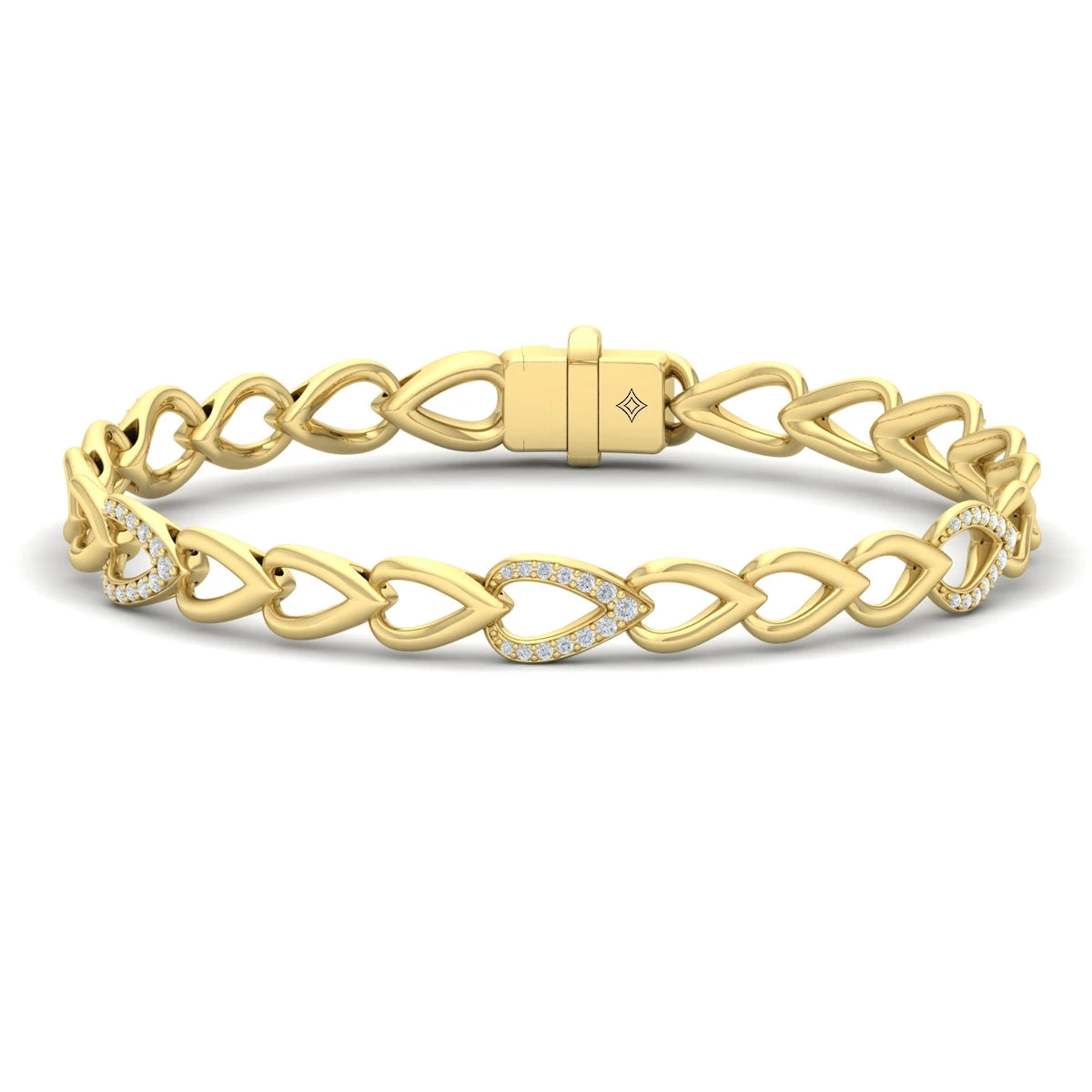 Diamond Open Tear Drop and Multi Tear Drop Link Bracelet Yellow Gold