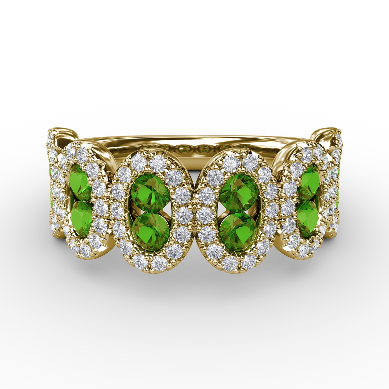 This think like a queen emerald and diamond ring comes in a variety of material types like 14k white gold, yellow gold, rose gold and can be customized. Fana diamond fashion rings are perfect for that special woman in your life.