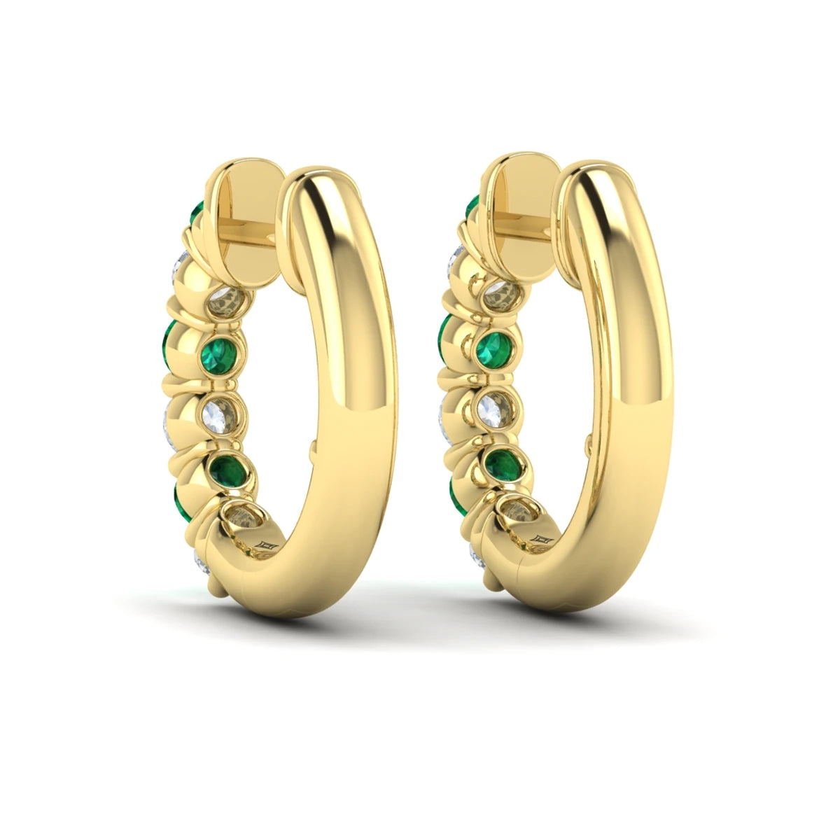 You're reviewing: Forward-facing Diamond and Emerald Open Hoop Earrings Yellow Gold