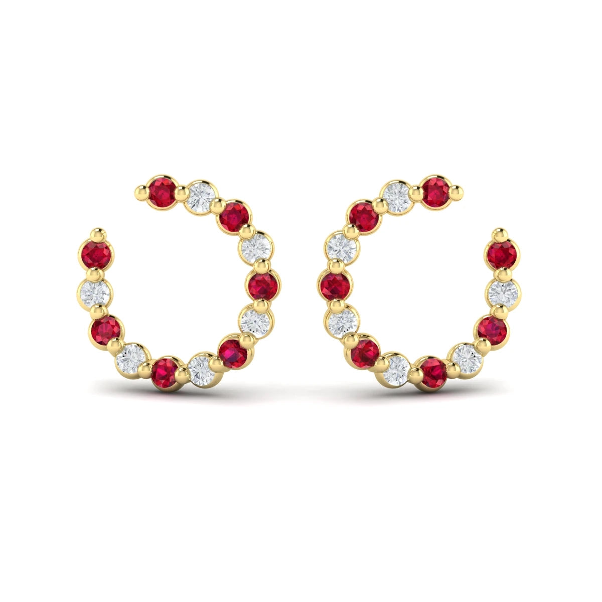 You're reviewing: Forward-facing Diamond and Ruby Open Hoop Earrings Yellow Gold