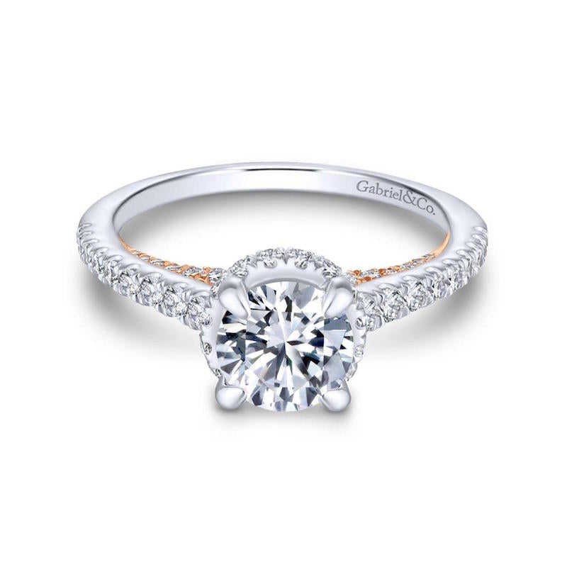 Gabriel & Co. 14k Two Tone Gold Crown Straight Engagement Ring