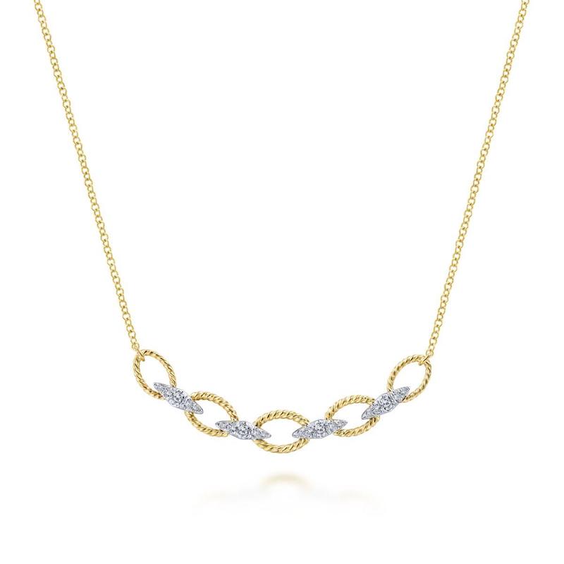 14k Yellow & White Gold Twisted Chain Link Diamond Fashion Necklace