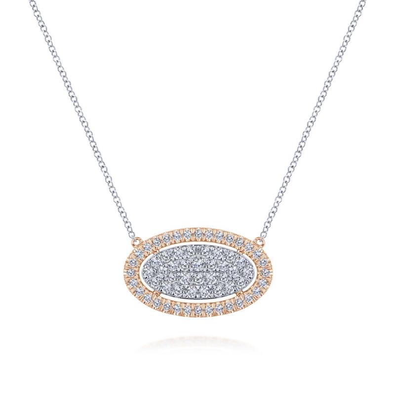 14k White & Rose Gold Pave Diamond Oval Pendant Fashion Necklace