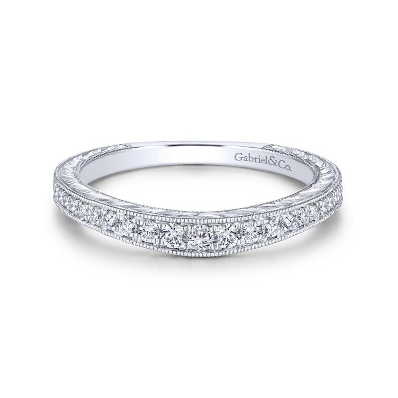 Gabriel & Co. 14k White Gold Victorian Curved Wedding Band