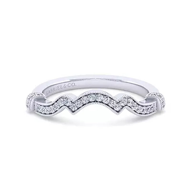 Gabriel & Co. 14K White Gold Victorian Curved Wedding Band