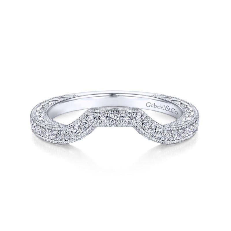Gabriel & Co. 14k White Gold Victorian Curved Wedding Band