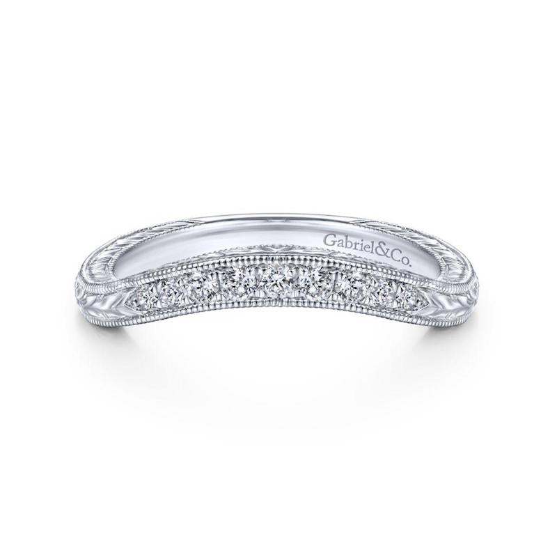 Gabriel & Co. 14k White Gold Victorian Curved Wedding Band