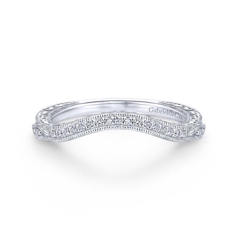 Gabriel & Co. 14k White Gold Victorian Curved Wedding Band