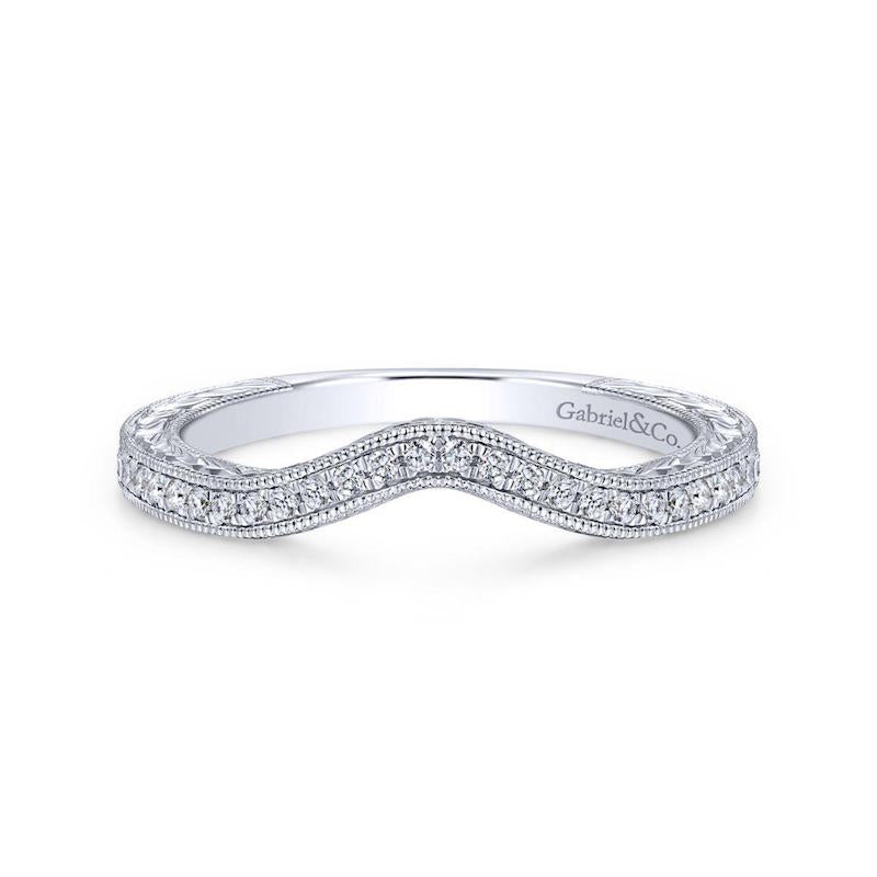 Gabriel & Co. 14k White Gold Victorian Curved Wedding Band