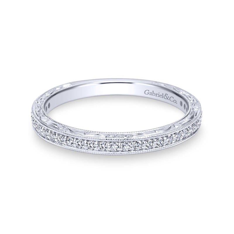Gabriel & Co. 14k White Gold Victorian Diamond Wedding Band