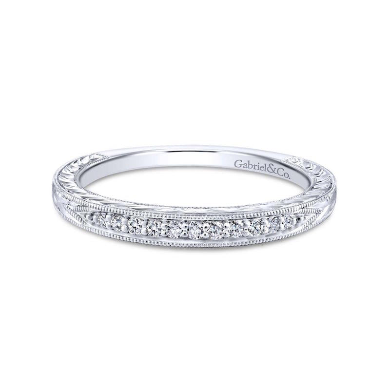 Gabriel & Co. 14k White Gold Victorian Diamond Wedding Band