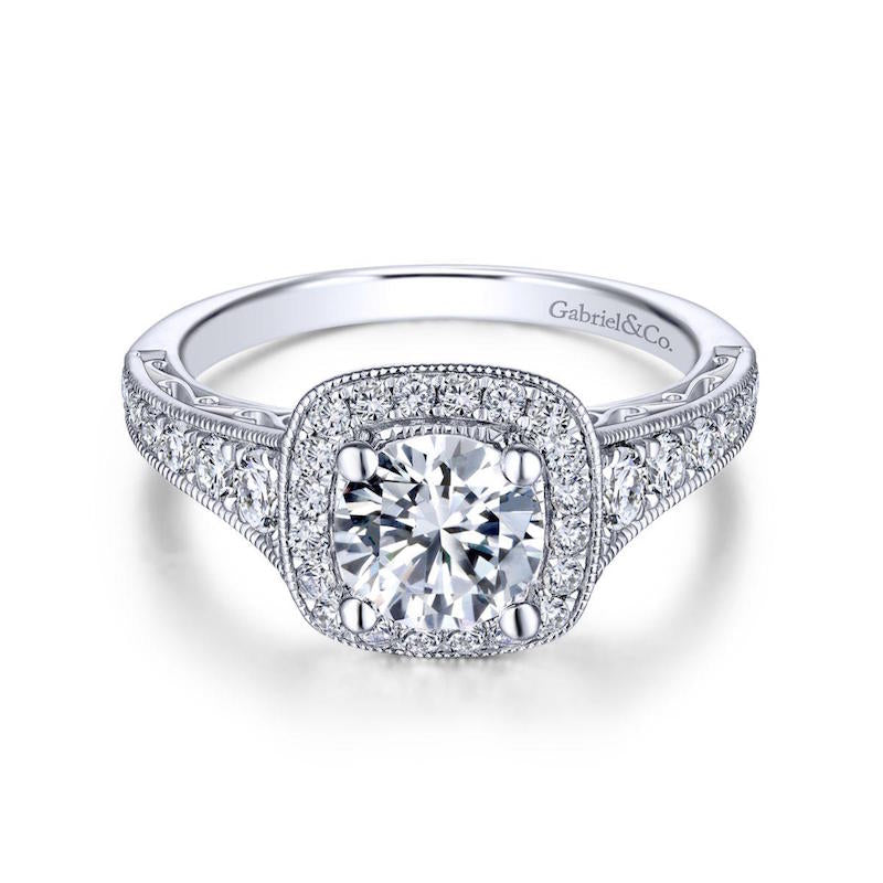 Gabriel & Co. 14k White Gold Victorian Halo Engagement Ring