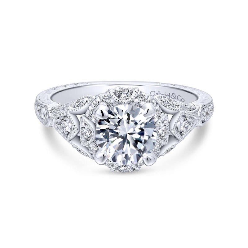 Gabriel & Co. 14k White Gold Victorian Vintage Engagement Ring