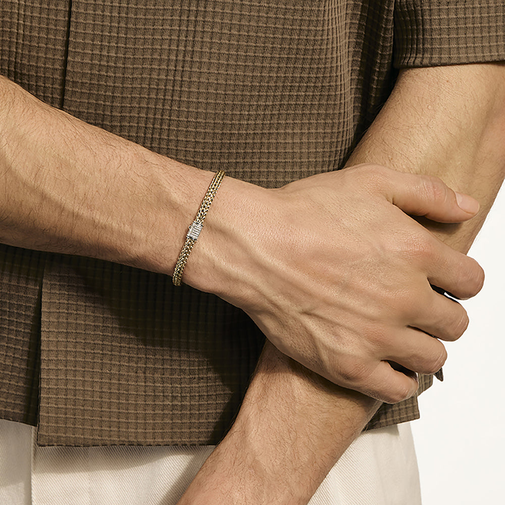 Icon Bracelet, Reversible, Gold, Sterling Silver, Diamonds, 5MM