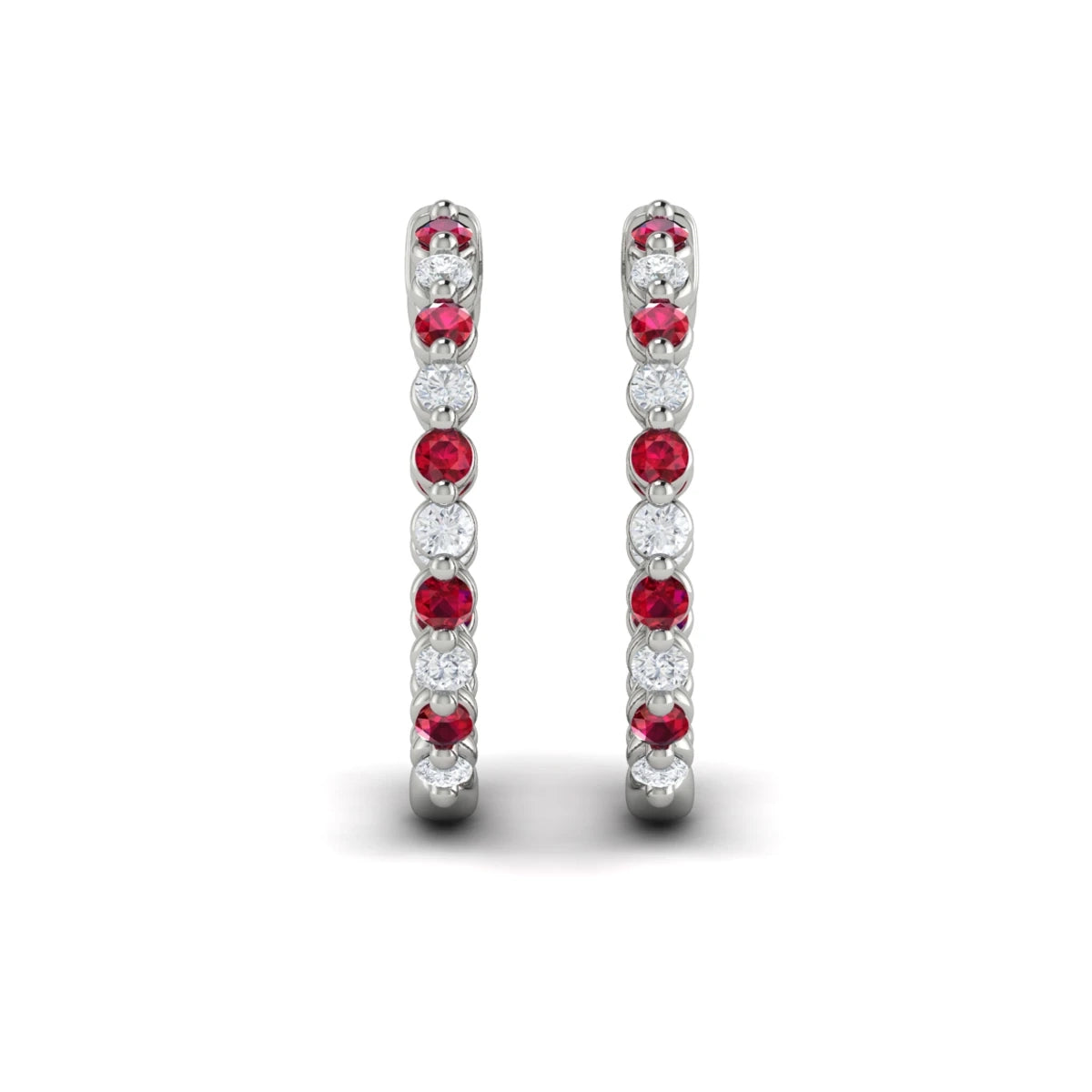 Inside Out Diamond and Ruby Hoop Earrings Platinum