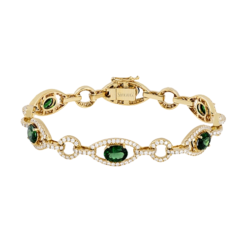 Gorgeous dark green tsavorite garnets are set off beautifully by 18k yellow gold in this classic bracelet.