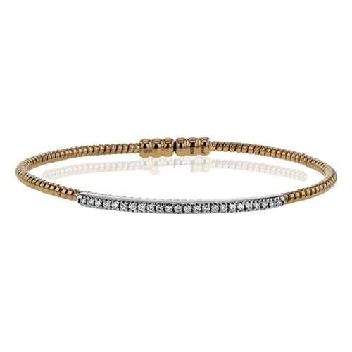 This 18k white and rose gold bangle is incredibly easy to wear, while providing a complete dose of style with .24 ctw of white diamonds. Perfect for stacking.