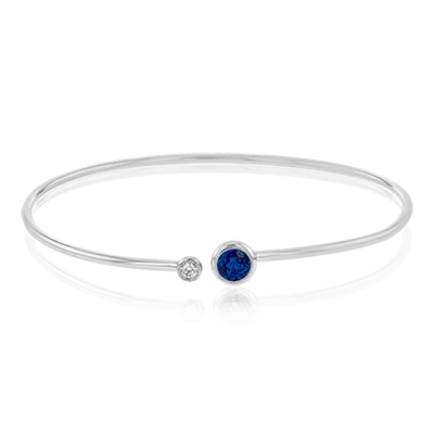This understated white gold bangle features a subtle .08 ctw white diamond accent opposite a stunning .71 ctw sapphire. Perfect for stacking.