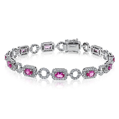 This elegant diamond and gemstone bracelet features 2.21 ctw of ruby and 1.90 ctw of white diamonds, set in 18K white gold
