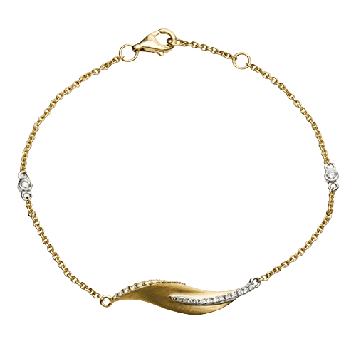 This nature-inspired 18k yellow gold bracelet contains .20 ctw of diamonds in a leaf design.