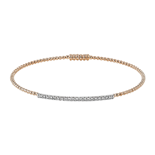 18K RG beaded bangle with a bar of shimmering diamonds in the center 0.28 ctw, and a magnetic closure