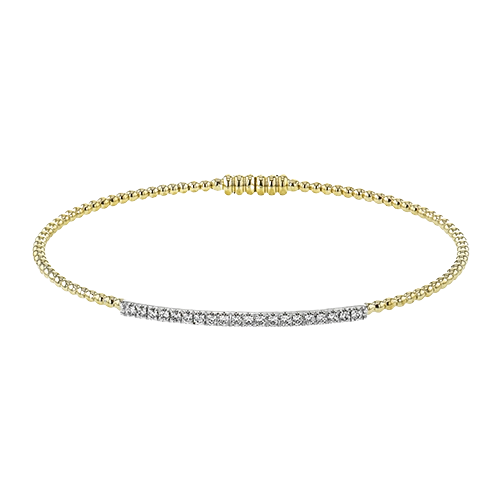 18K YG beaded bangle with a bar of shimmering diamonds in the center 0.28 ctw, and a magnetic closure