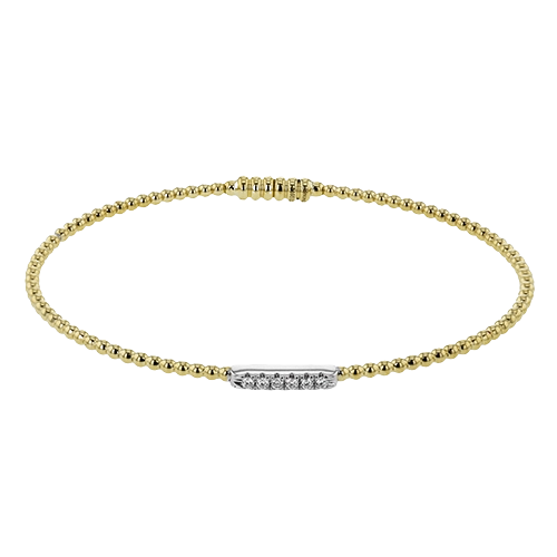 18K two tone YG beaded stackable bangle accented with 0.08 ctw of white diamonds, and a magnetic closure