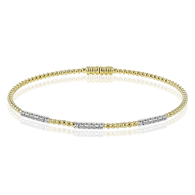 18K two tone YG beaded stackable bangle with 3 white gold stations of diamonds 0.23 ctw, and a magnetic closure