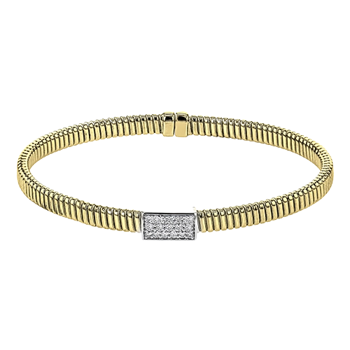 18k Yellow gold textured bangle is highlighted by .25 ctw of diamonds set in a rectangular design. Perfect for stacking