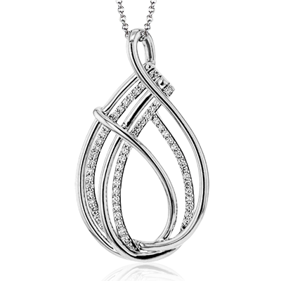 This teardrop shaped pendant is set with .31 ctw of diamonds in 18k white gold.