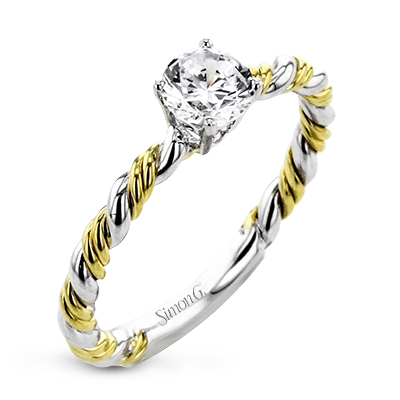 White and yellow 18k gold twine around each other in this ring that puts a twist on a classic design.
