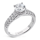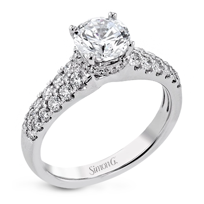Shining white diamonds encircle the center stone in this Underhalo engagement ring, while also extending across the sides of the ring to ensure it glitters from all directions.