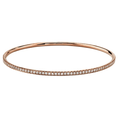 Presenting a charming classic style, this rose gold bangle bracelet is highlighted by .86 ctw of dazzling round white diamonds. Perfect for stacking.
