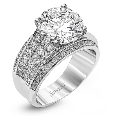 Presenting an eye-catching contemporary design, this white gold engagement ring features 1.31 ctw of princess cut white diamonds accented by .21 ctw of round cut white diamonds.