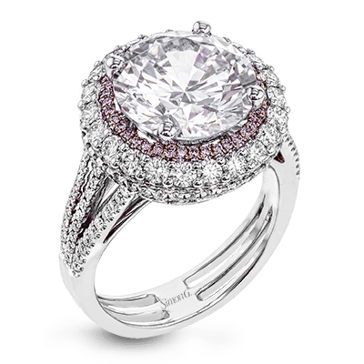 This 18k white and rose gold engagement ring is sure to turn heads with 1.09 ctw of white diamonds as well as .12 ctw of pink diamonds.
