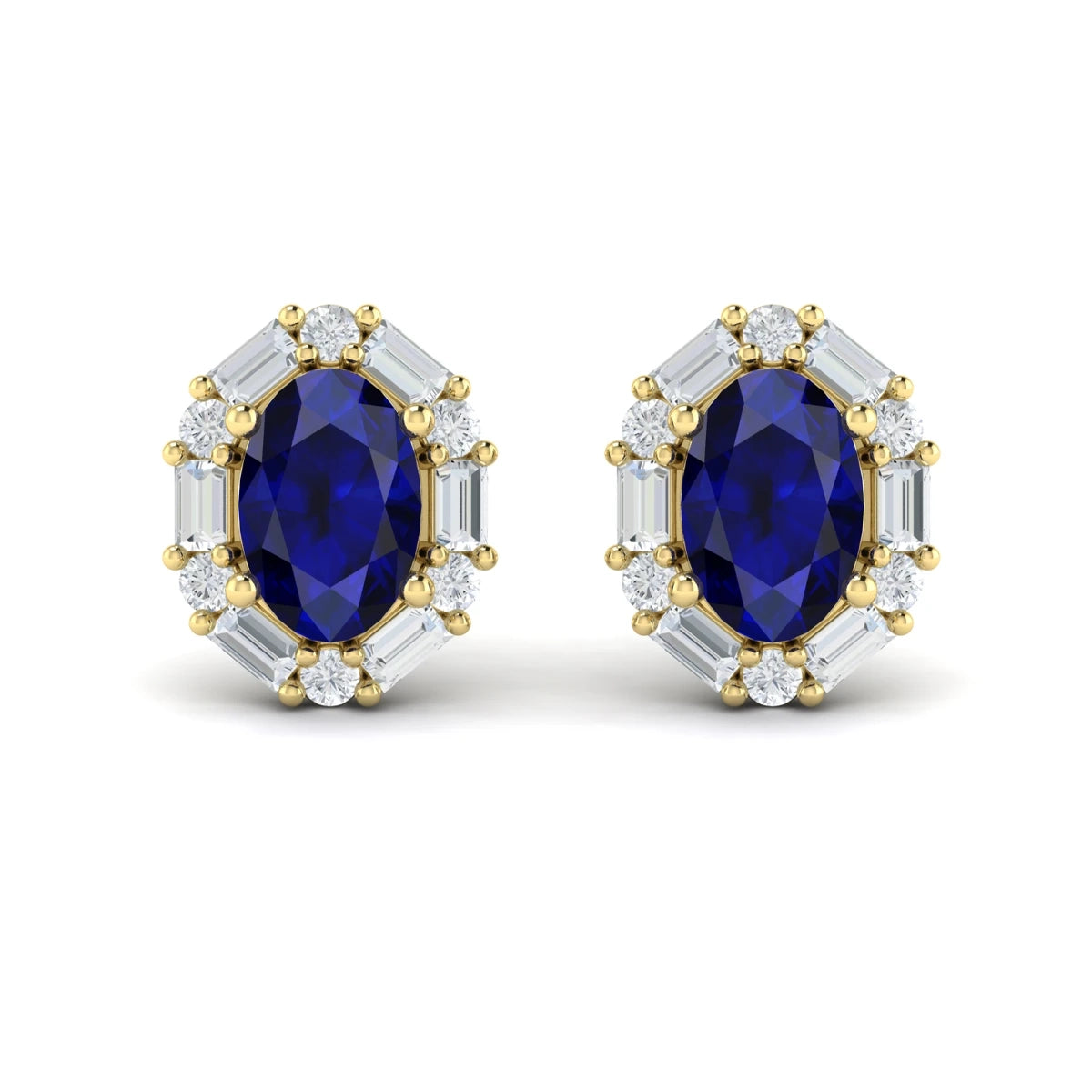 Oval Sapphire and Diamond Baguette Earrings Yellow Gold