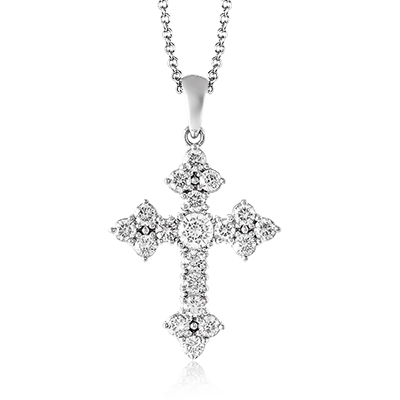 This delicately styled classic white gold cross is beautifully set with .47 ctw of glistening round cut white diamonds accents.