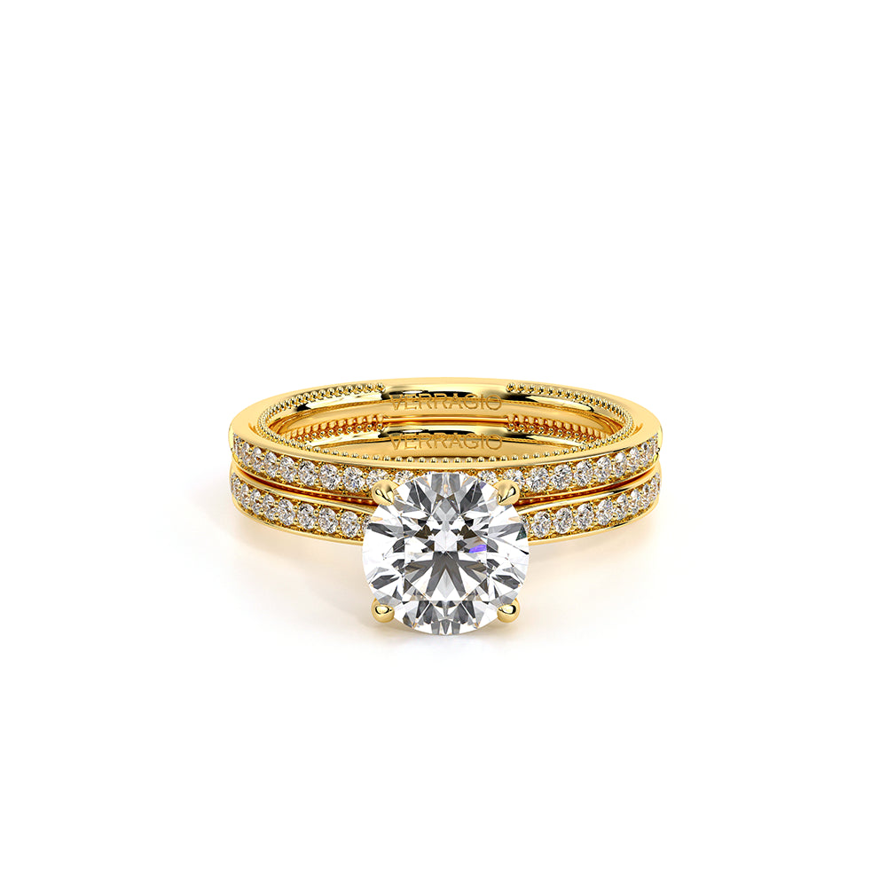 Renaissance-SLD301-R is a timeless engagement ring, created for your perfect Round shaped center stone. The diamond band is set to maximize the sparkle and brilliance of your center stone. This setting features an elegant and refined profile with Verragio's signature beading and crest.