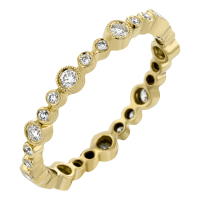 This wonderful stacking band can be worn with others or on its own. It has .30 ctw of multi-sized round white diamonds.
