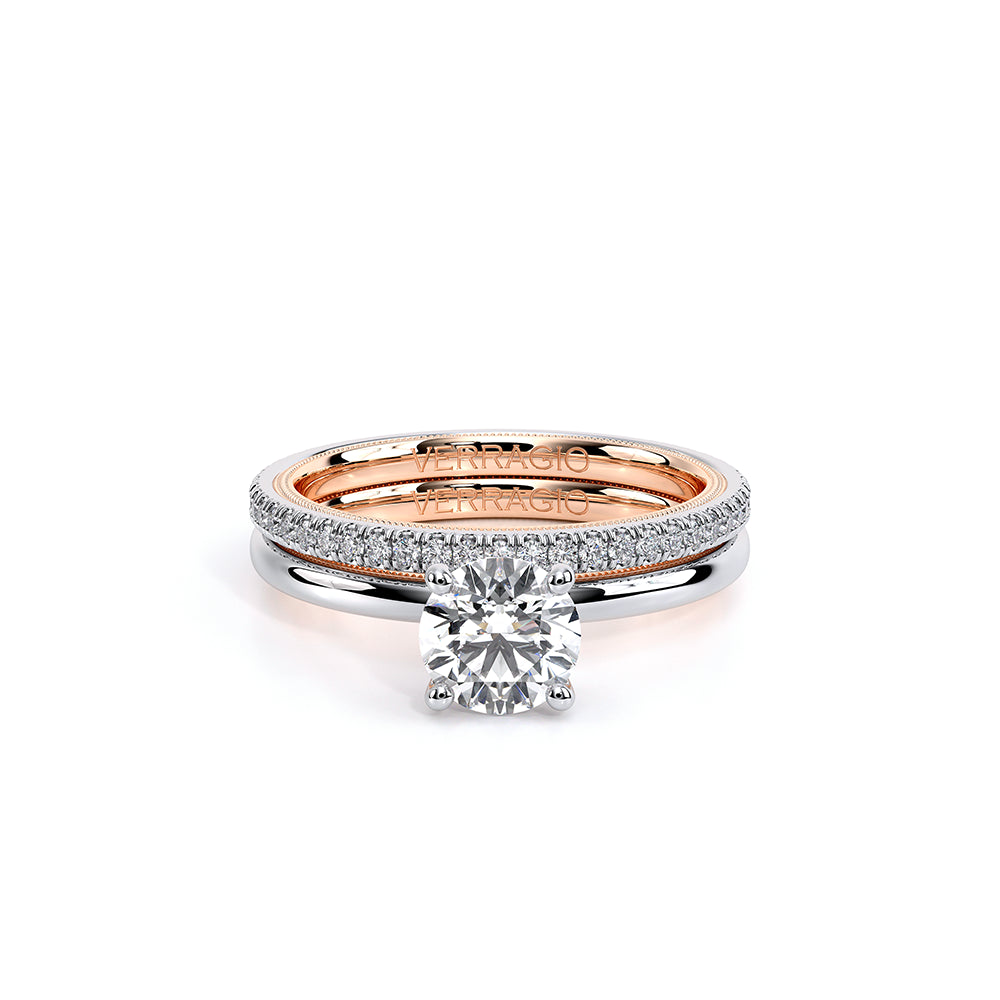 TR-120R4-S features an elegant solid band that is forged under extreme pressure and pushes the limits of refined durability. This ring features our hand sculpted Signature Verragio beading and Verragio crest to perfectly highlight your choice of center stone.